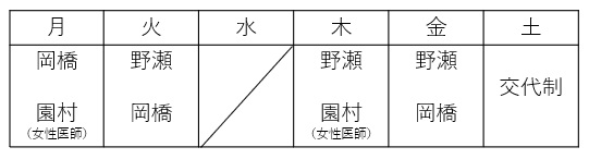 | 診察時間 | 月 | 火 | 水 | 木 | 金 | 土 |